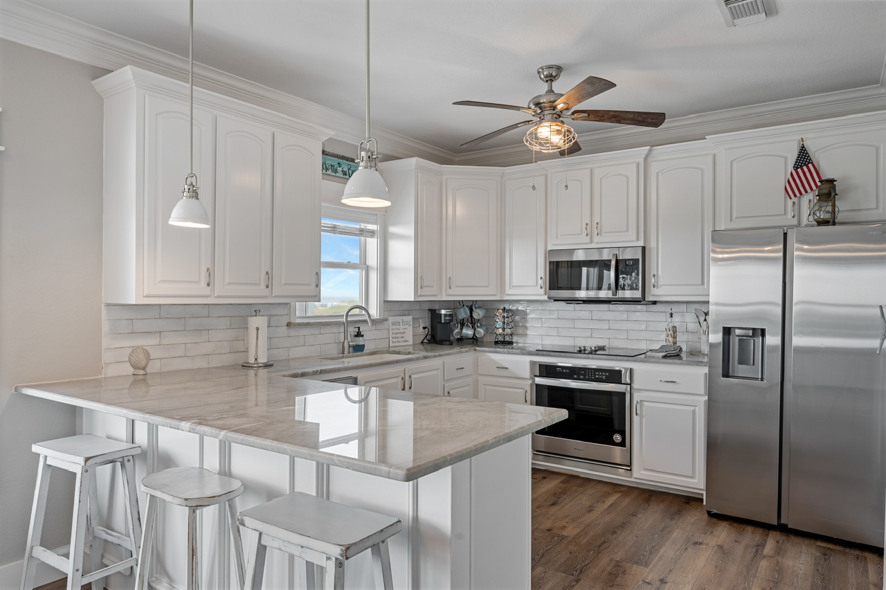 - Fully Equipped Kitchen: Prepare delicious meals in the modern kitchen, complete with stainless steel appliances, granite countertops, and a breakfast bar.