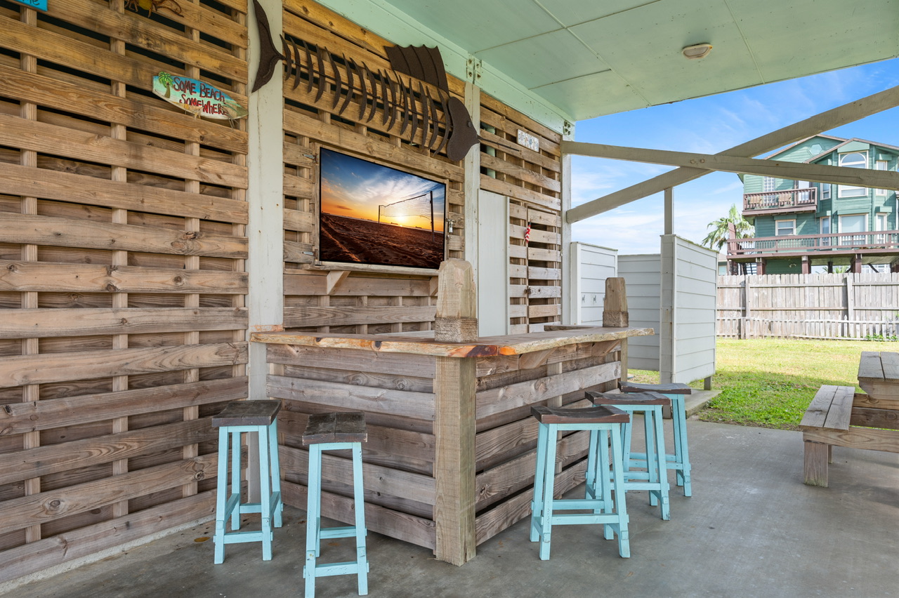 - Outdoor Bar with TV: Unwind at the outdoor bar area equipped with a TV, ideal for enjoying your favorite shows or sports while savoring the sea breeze.