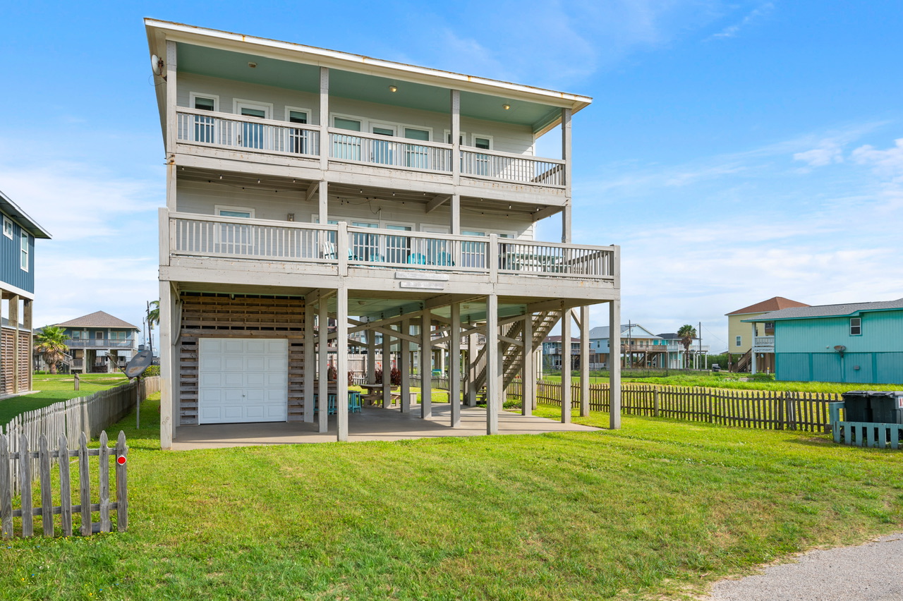 Welcome to B3 Sand Ranch, your ideal beach retreat located in the Ocean Shores subdivision of Crystal Beach, Texas.This spacious 4-bedroom, 3-bathroom home comfortably accommodates up to 14 guests, making it perfect for family vacations or group getaways.