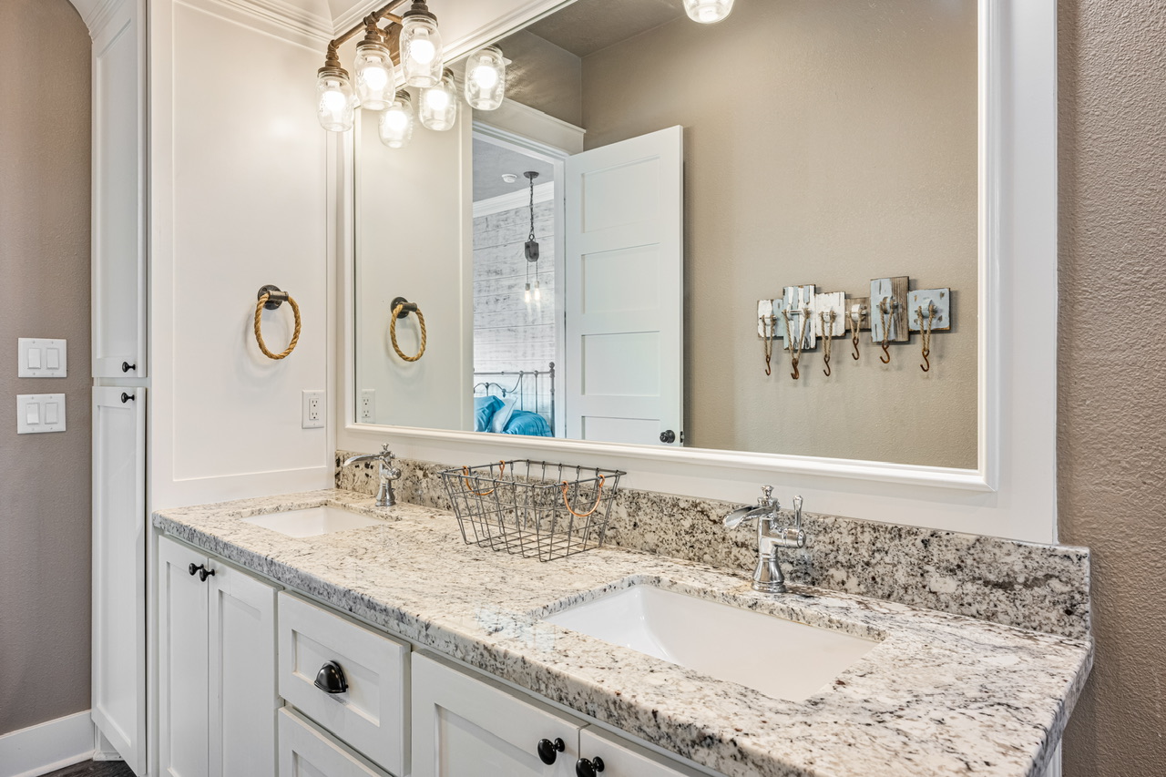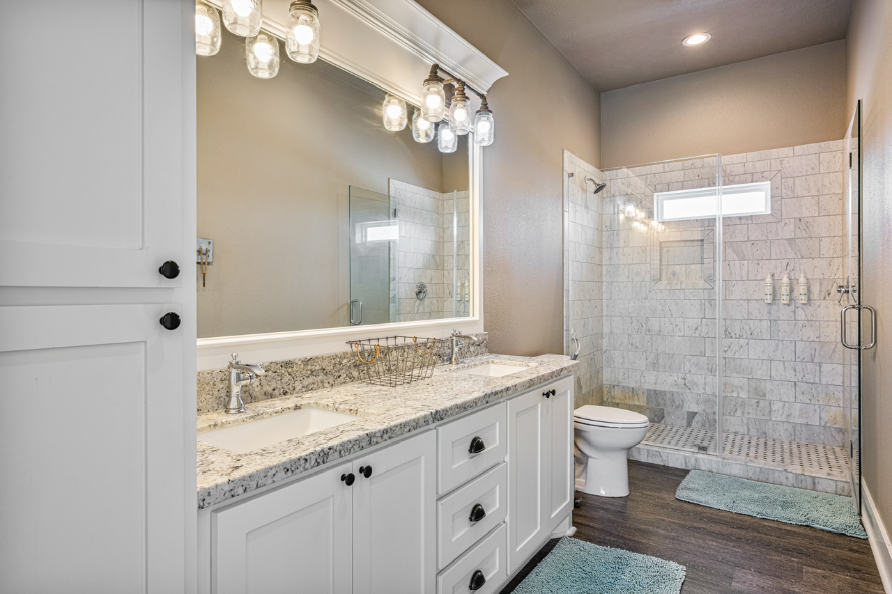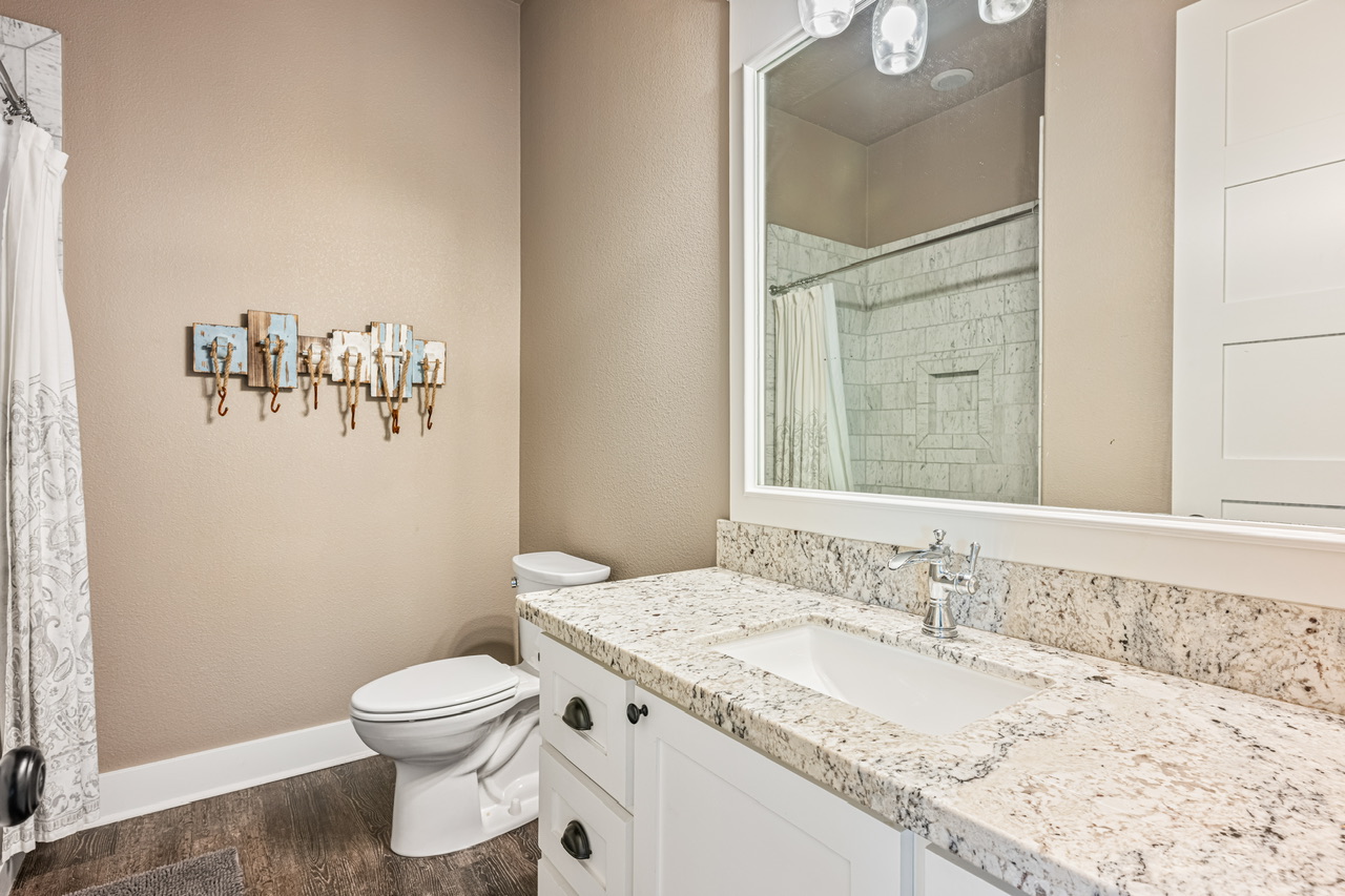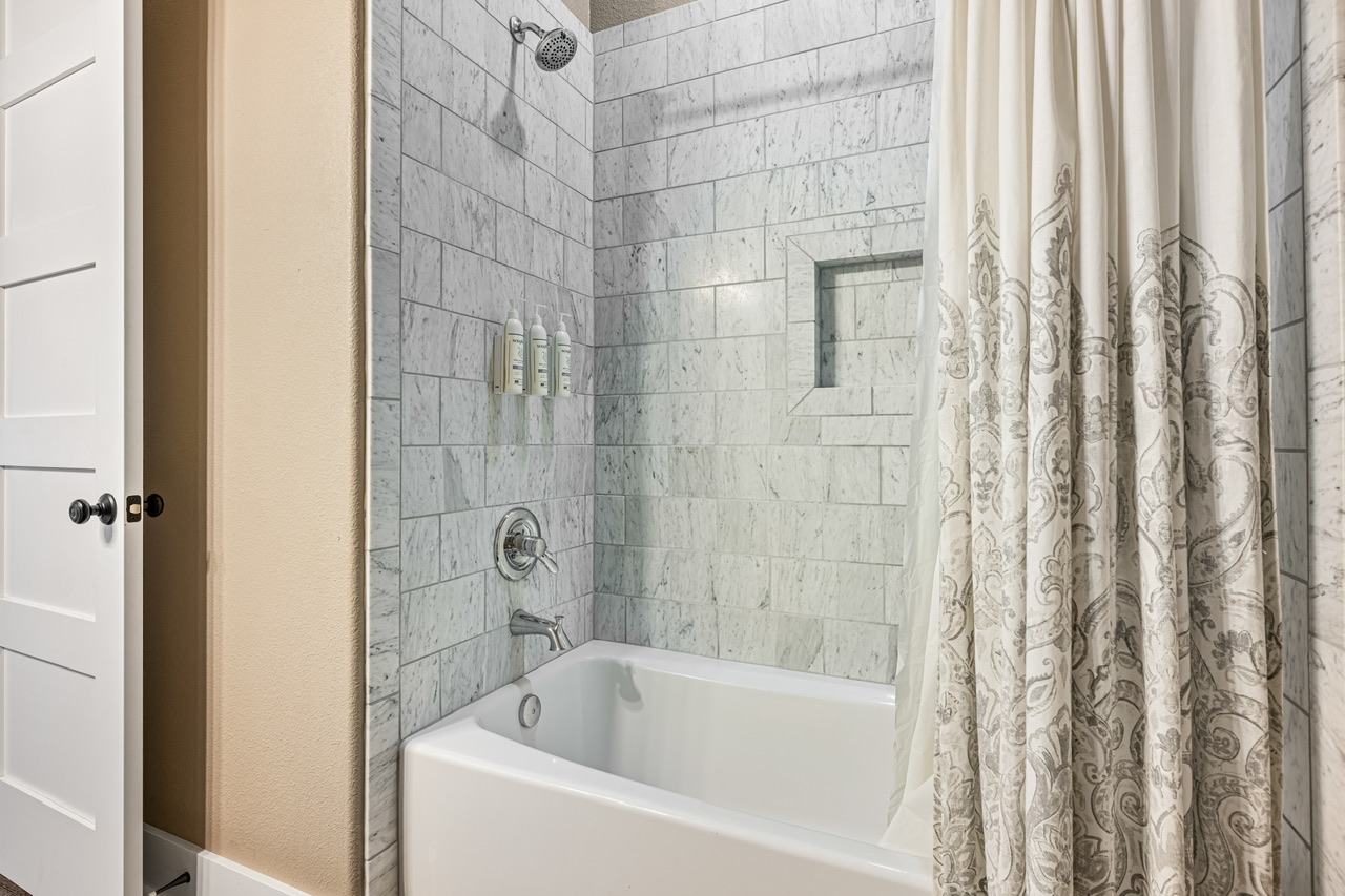 PRIMARY BEDROOM (KING), BEDROOM 2 (QUEEN), BEDROOM 3 (QUEEN/QUEEN BUNK W/ FULL TRUNDLE). PRIMARY BATH (LARGE WALK-IN SHOWER), BATH 2 (SHOWER/TUB COMBO).