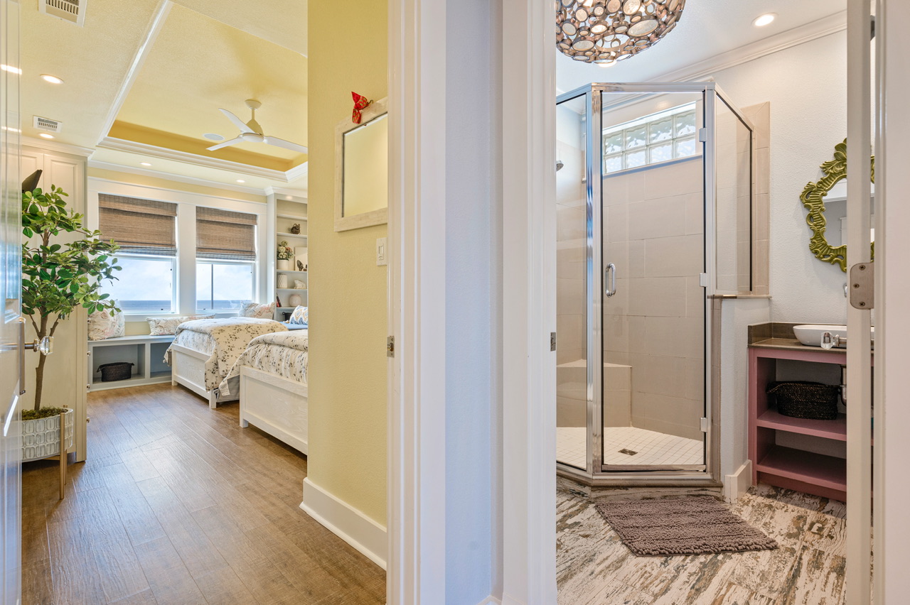 - Primary Suite: King bed, private en suite bath, Gulf views, and direct deck access