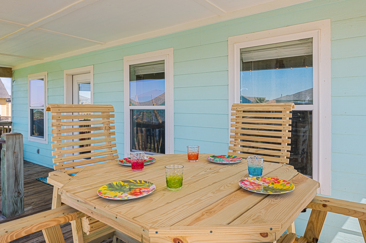 Outdoor living is one of the highlights of Buho Vista. The large wrap-around deck provides a great place to enjoy Gulf breezes, relax with morning coffee, or gather for outdoor meals. With plenty of seating and views of the water, it's an ideal space to unwind after a day at the beach.