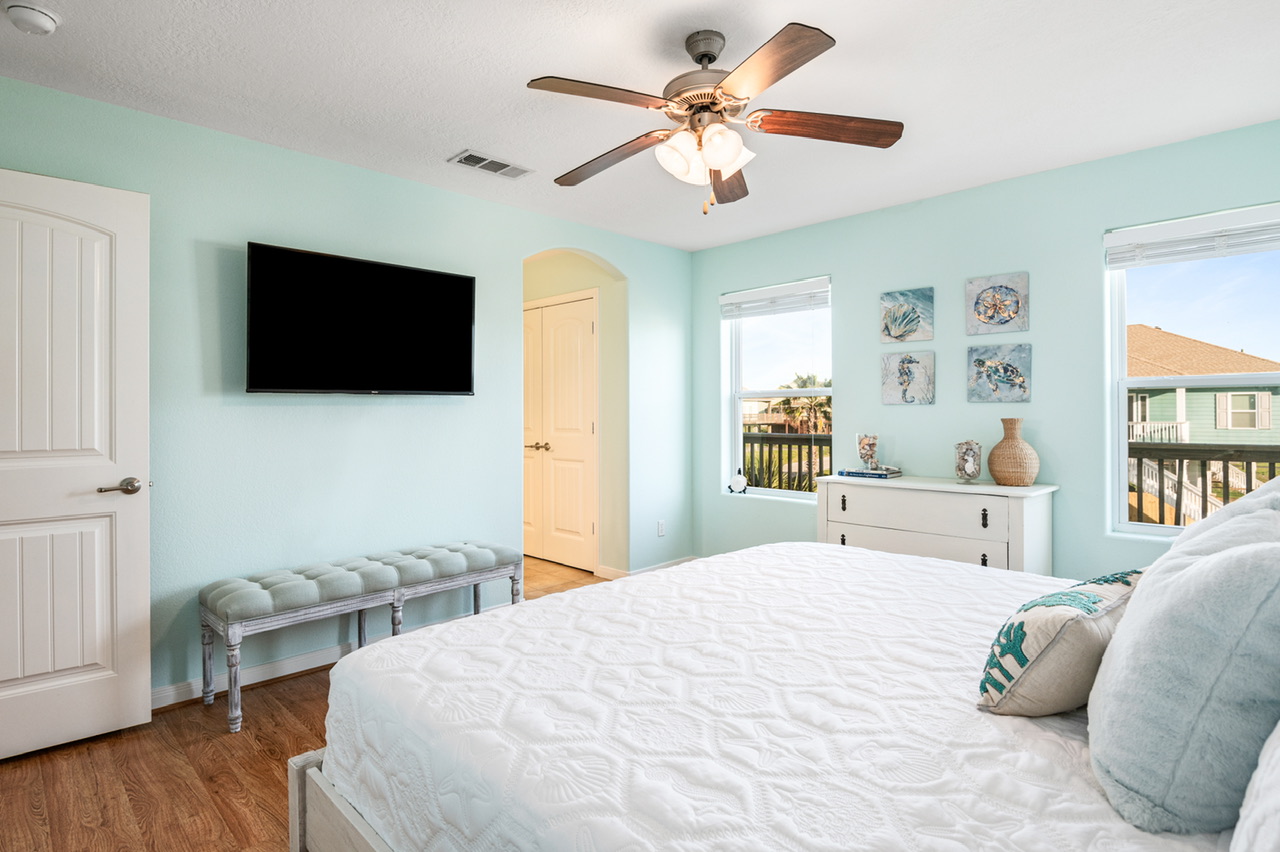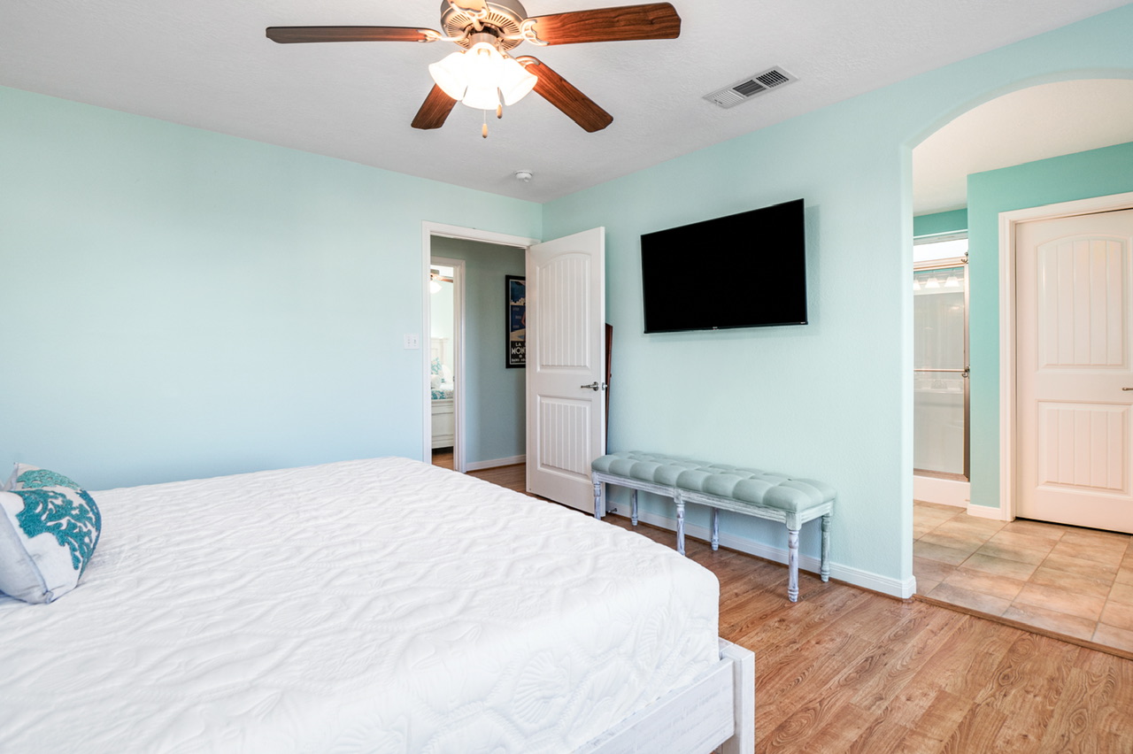 The kitchen is fully equipped for preparing meals during your stay and includes a Keurig coffee maker for convenient morning coffee. Smart TVs are located throughout the home so guests can stream their favorite entertainment using their own accounts.