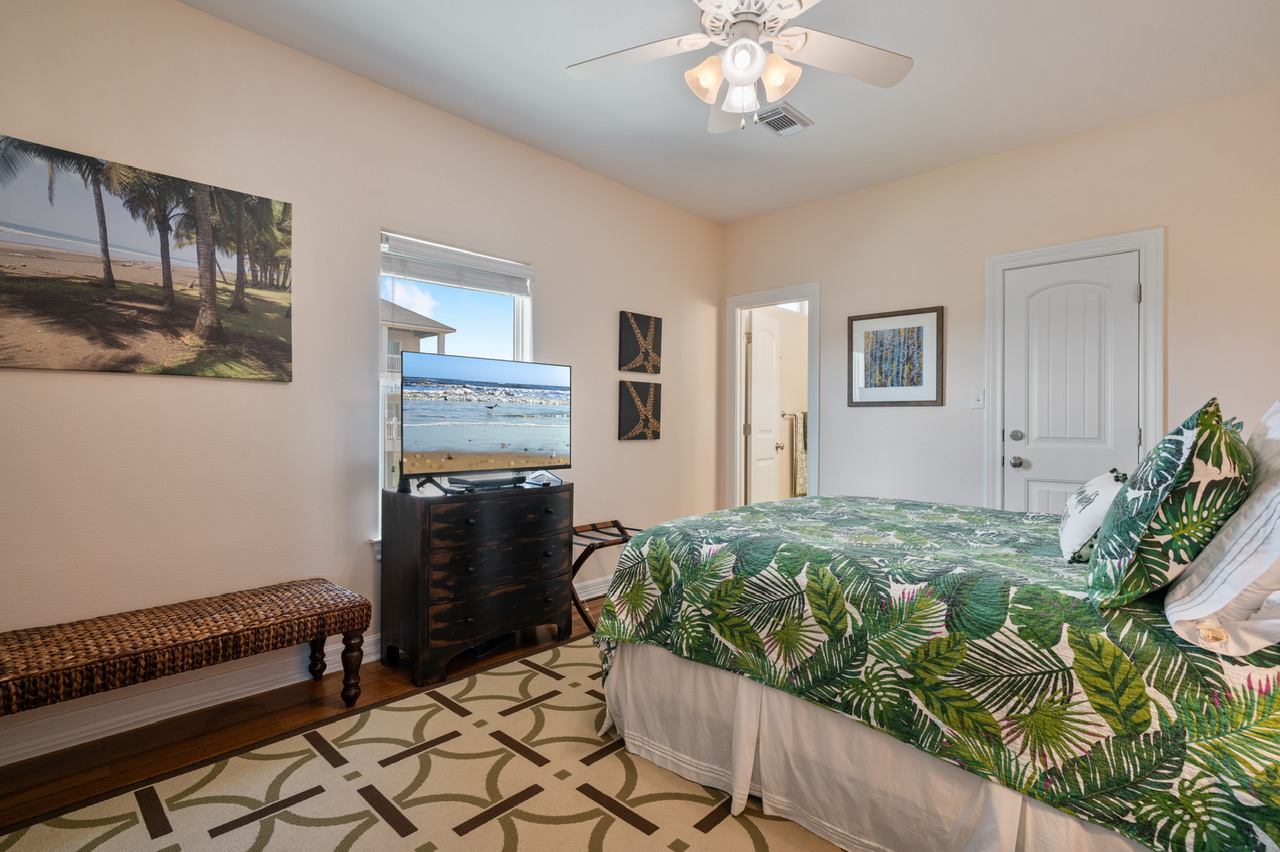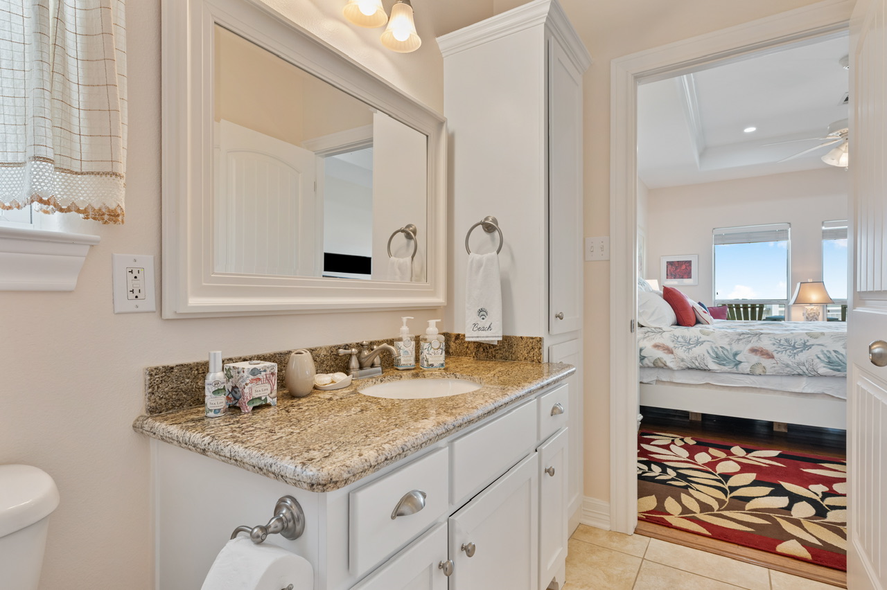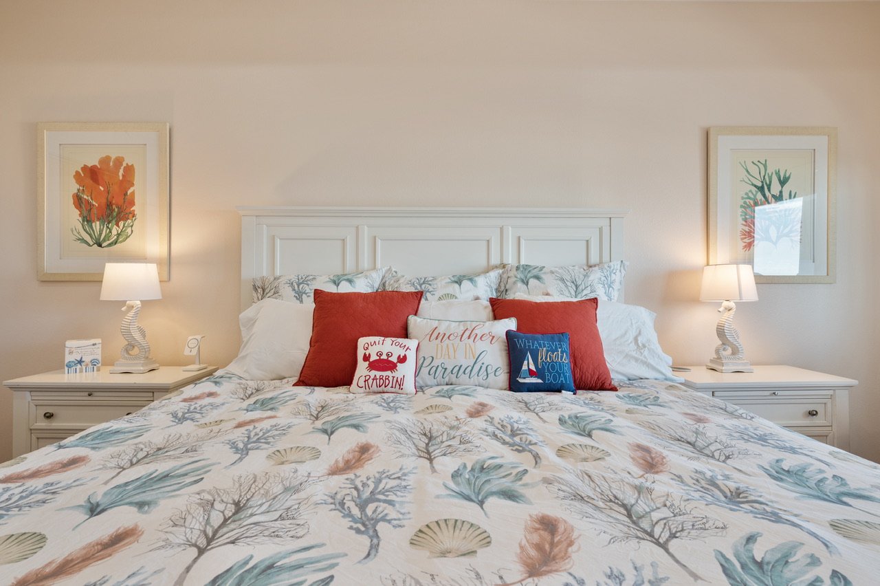 Primary Bedroom (King), Bedroom 2 (Queen) w/bath, Bedroom 3 (1 Queen, 1 Full/Full Bunk Bed ). Primary Bath (Walk-in Shower, Separate Tub), Bathroom 2 (Tub/Shower Combo), Guest Bathroom / Hall (Tub/Shower Combo).