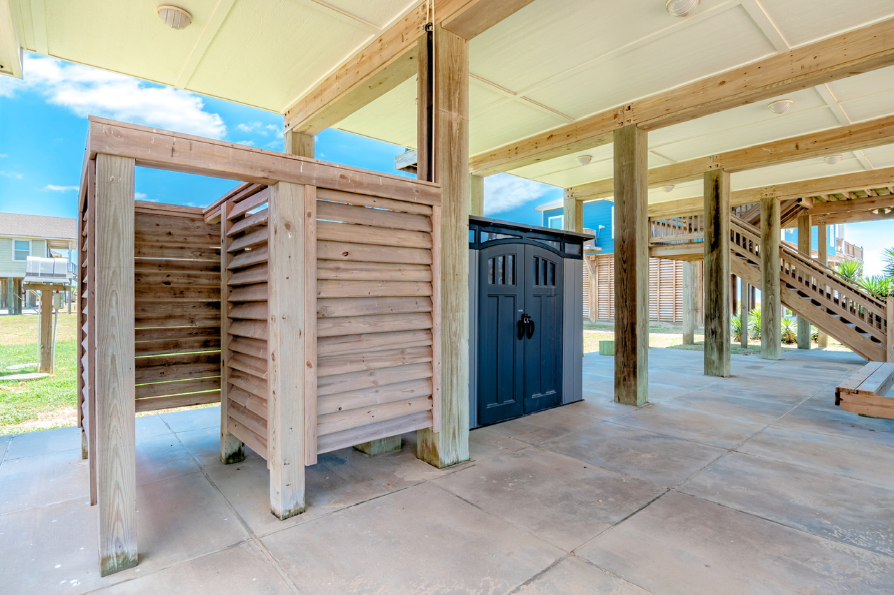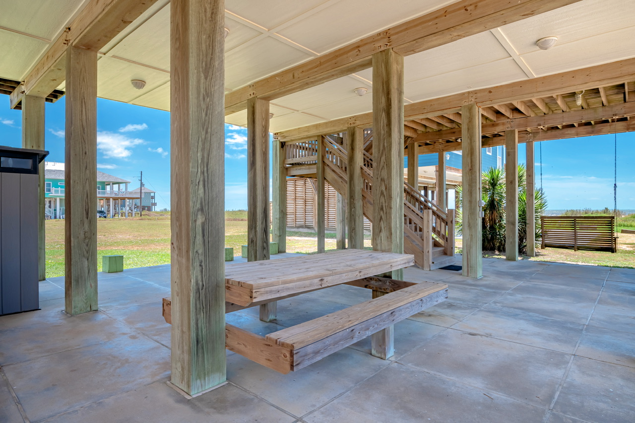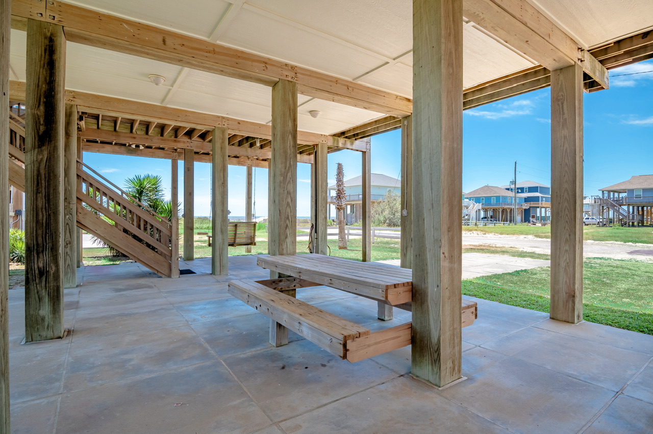 One thing to keep in mind, the beach does allow cars to drive on the 'beach road,' which was fine during the week, but once the weekend started and the local spring break began there was a continuous flow of traffic on the beach. People drive slow, but with kids it made safety on the beach a bit more stressful. In addition, there were quite a few Portugese man-of-wars washed up on the beach. Bring a shovel so you can clear a space on the beach and not worry about kids stepping on them. Also, the chains on the swing downstairs were fairly corroded. I'm sure the salty air does that to the metal, but it made me nervous about them breaking. Maybe a plastic covered chain could fix that issue.