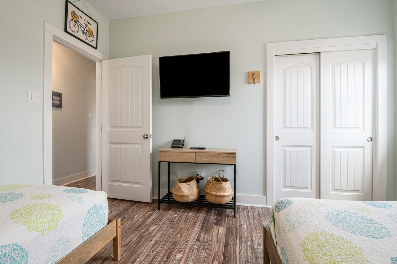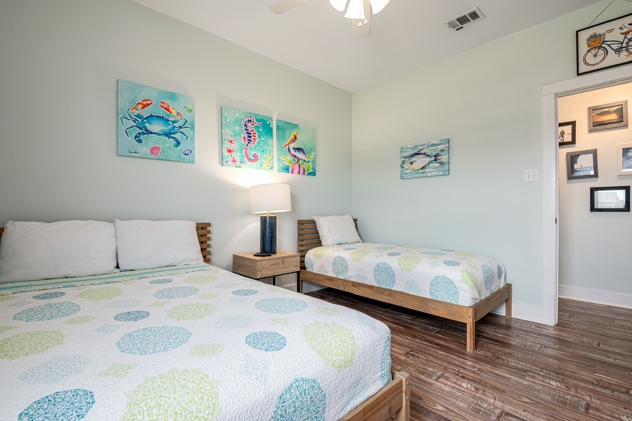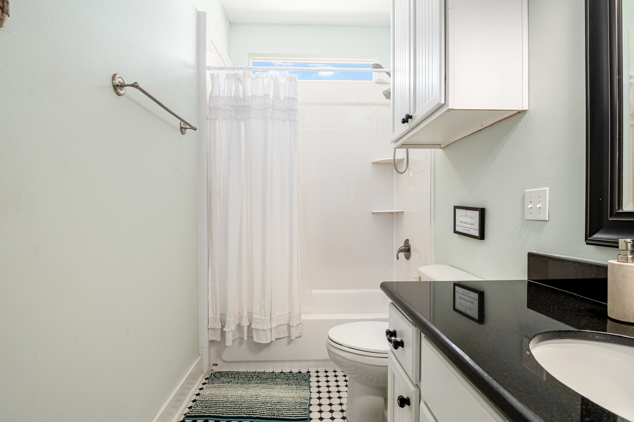 Very cute house was perfect for 4 adults and 5 kids under the age of 6. Appreciated the safety gate on the deck staircase and the safety plugs in all of the outlets. The decor made it feel like a fun place to be, even though it rained 4 out of our 7 days there. House had plenty of games and movies to keep the kids entertained. To get to the beach, you walk to the end of the driveway and you are pretty much here. We brought a wagon to carry out supplies, kids were able to walk there no problem. Beach access was so close that it only took a minute or two to get back to the house for the bathroom or to take naps.
