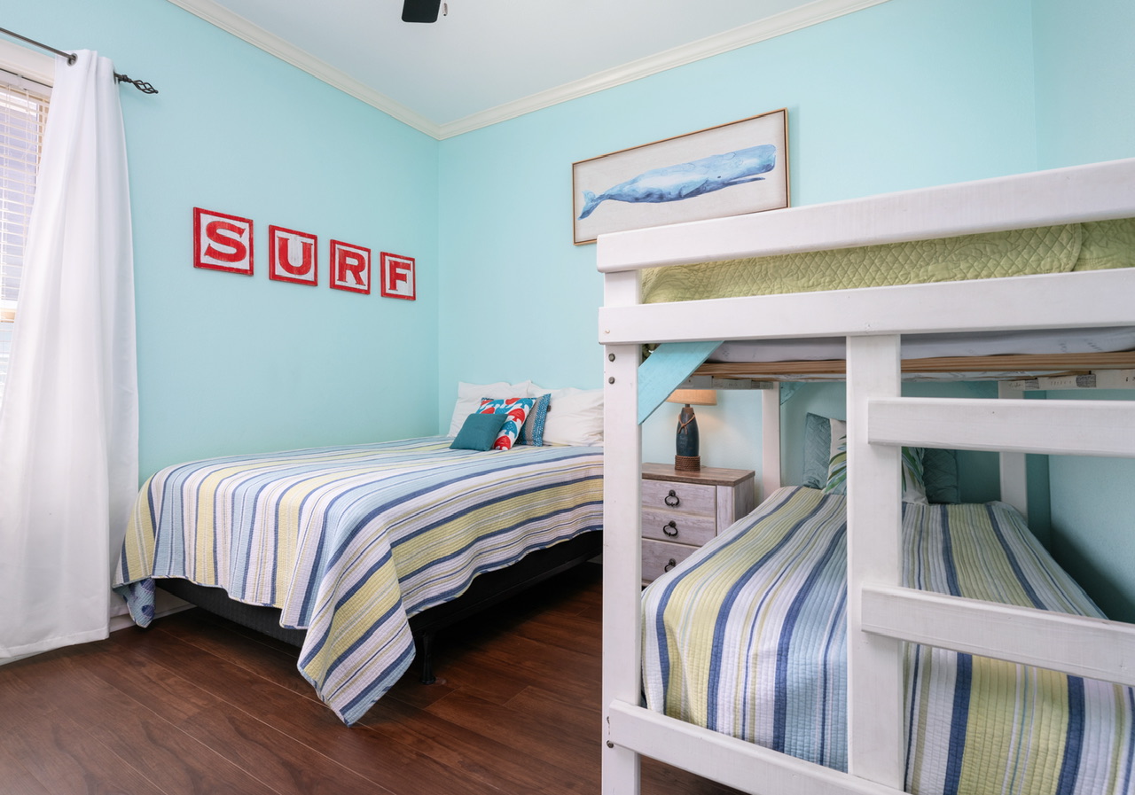 Bedroom 3: Queen bed and twin-over-twin bunk bed