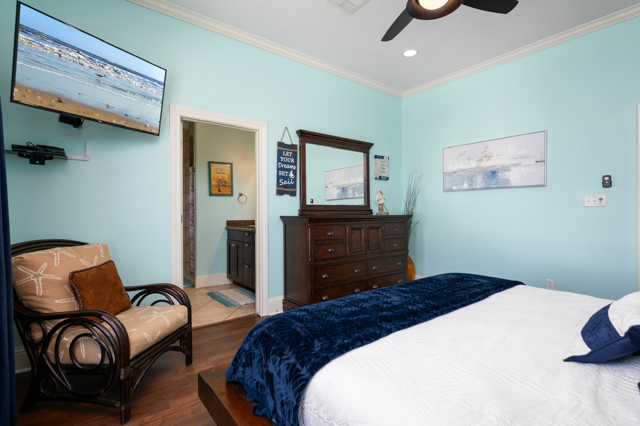 Keeping it Reel is a great name for this beach cabin. I only saw it from the outside when I booked it. When we arrived and unlocked the door it was way beyond my expections. We had a great time while there. We rented a golf cart and ate at the Stingaree. We also went to Galveston . But just staying at the cabin was so relaxing.- Anonymous from Vidor, Posted: 11/30/2022