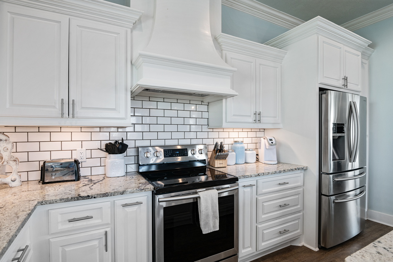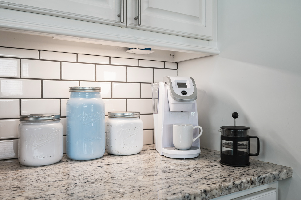 The kitchen comes stocked with the essentials needed for preparing meals during your stay, and there's plenty of seating nearby for casual breakfasts, dinners, or late-night snacks.