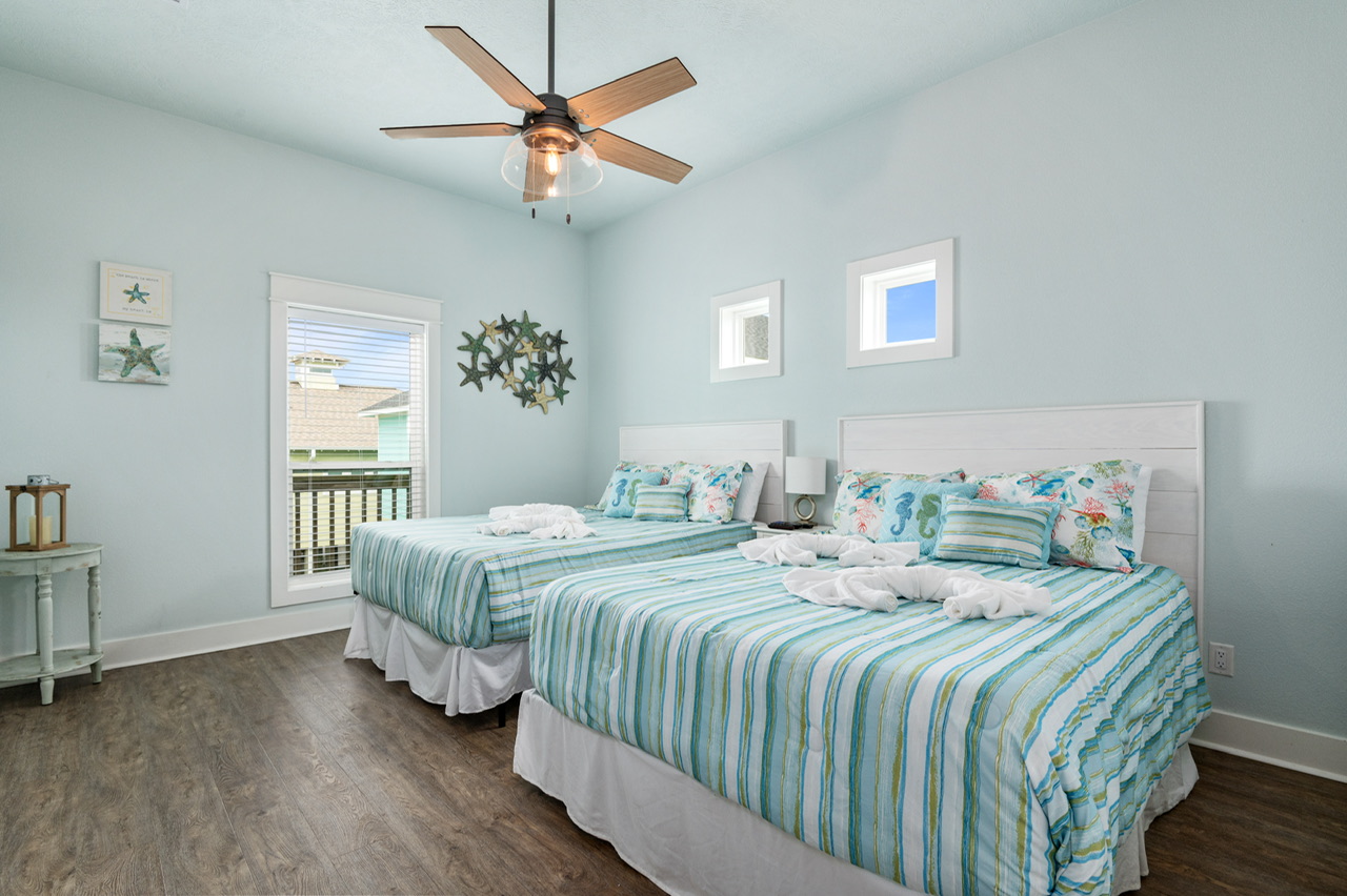 | Rooms | Primary Bedroom (King), Bedroom 2 (2 Queen beds), Bedroom 3 ( 2 Full/Full bunk beds). Primary Bath (Tub and Separate Shower), Guest Bath (Tub/Shower Combo). |
