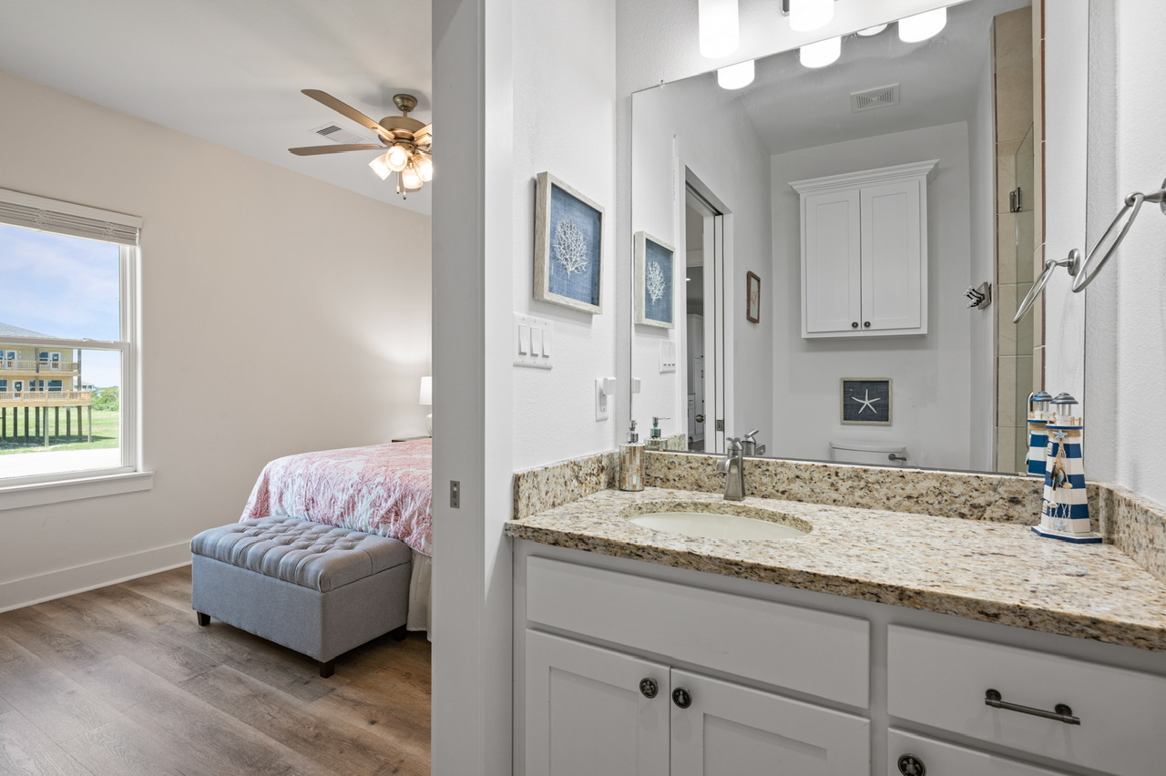 This was a great house, clean all the necessities that you needed plenty of room for your family and friends close to the beach you can sit on the porch every evening and just watch the ships and when we were on the beach, there was not a lot of traffic on the beach so it was great if you had little kids playing the area is a little further down from town, but it’s worth the maybe seven minute drive from the big store- Anonymous from Crosby, Posted: 06/30/2025