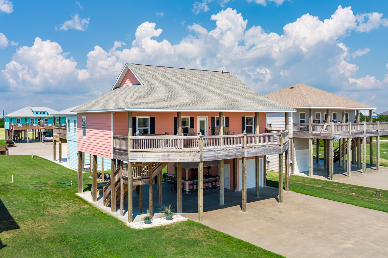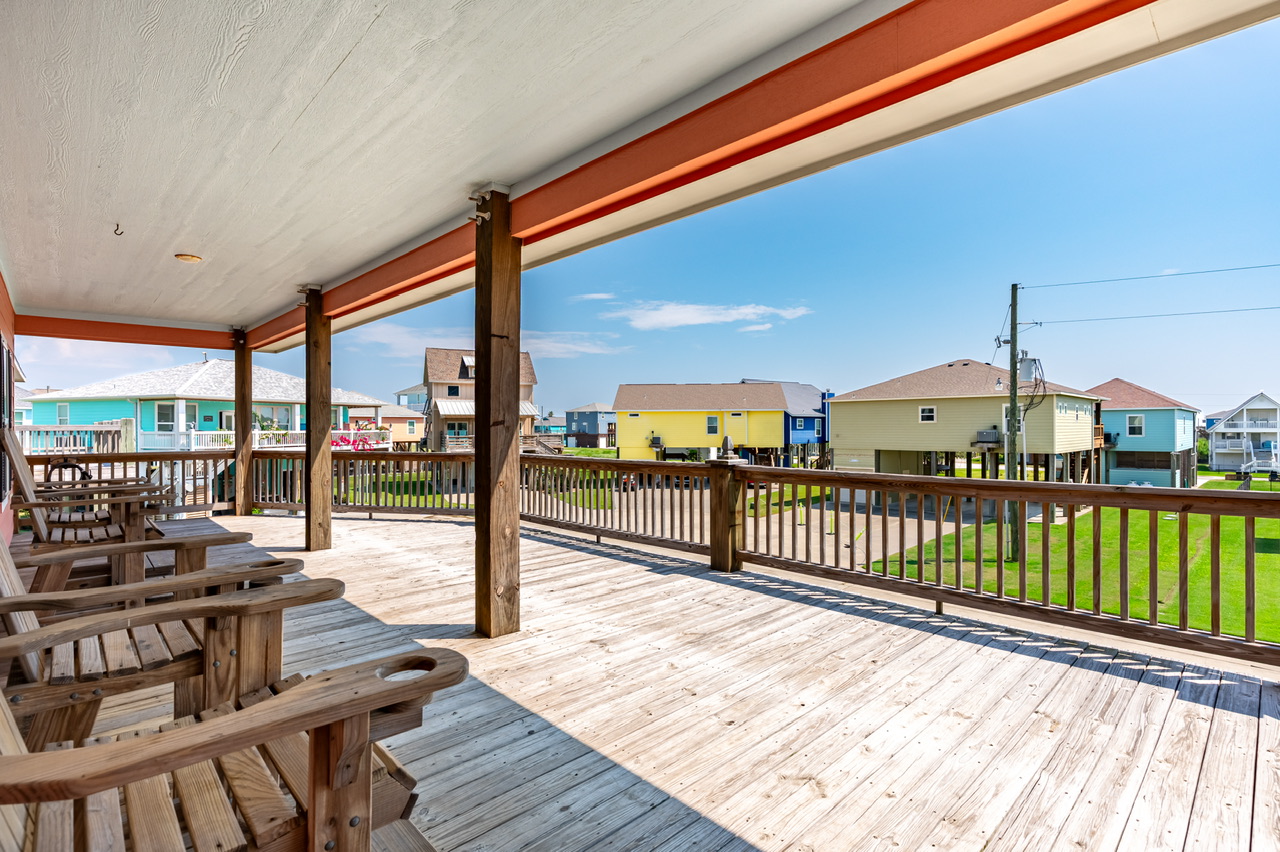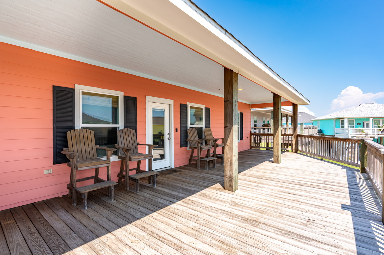 Come enjoy Sea Glass Retreat, tucked back on a quiet cul-de-sac in the heart of Crystal Beach, Texas. With the beach only a 5-minute walk away, this beautifully decorated 3 bedroom, 2 bath home is perfect for your next family beach vacation. Sea Glass Retreat features an open concept kitchen, dining and living areas and here you will find everything you need, so just relax and enjoy. The kitchen has a custom banquette with ample seating and a large island with additional seating. The kitchen has everything needed to prepare meals but there are also many great restaurants nearby if you would rather dine out. The dual Keurig coffee maker works with K-Pods as well as traditional drip coffee. The kitchen also includes a margarita machine, so plan to make your favorite frozen drinks while you're here! Step out on the amazing deck to enjoy the morning breeze with your coffee before heading off to the beach or to any of the many great activities available nearby.