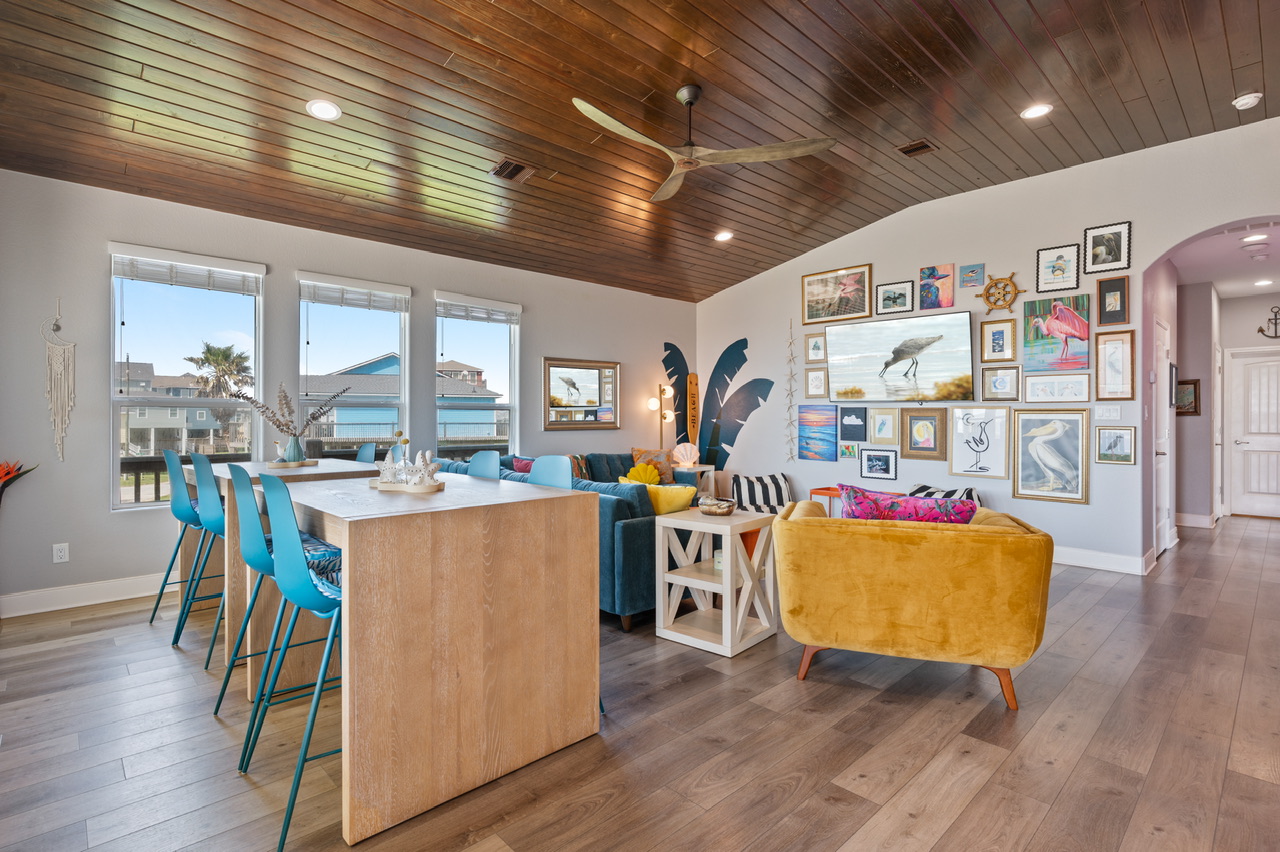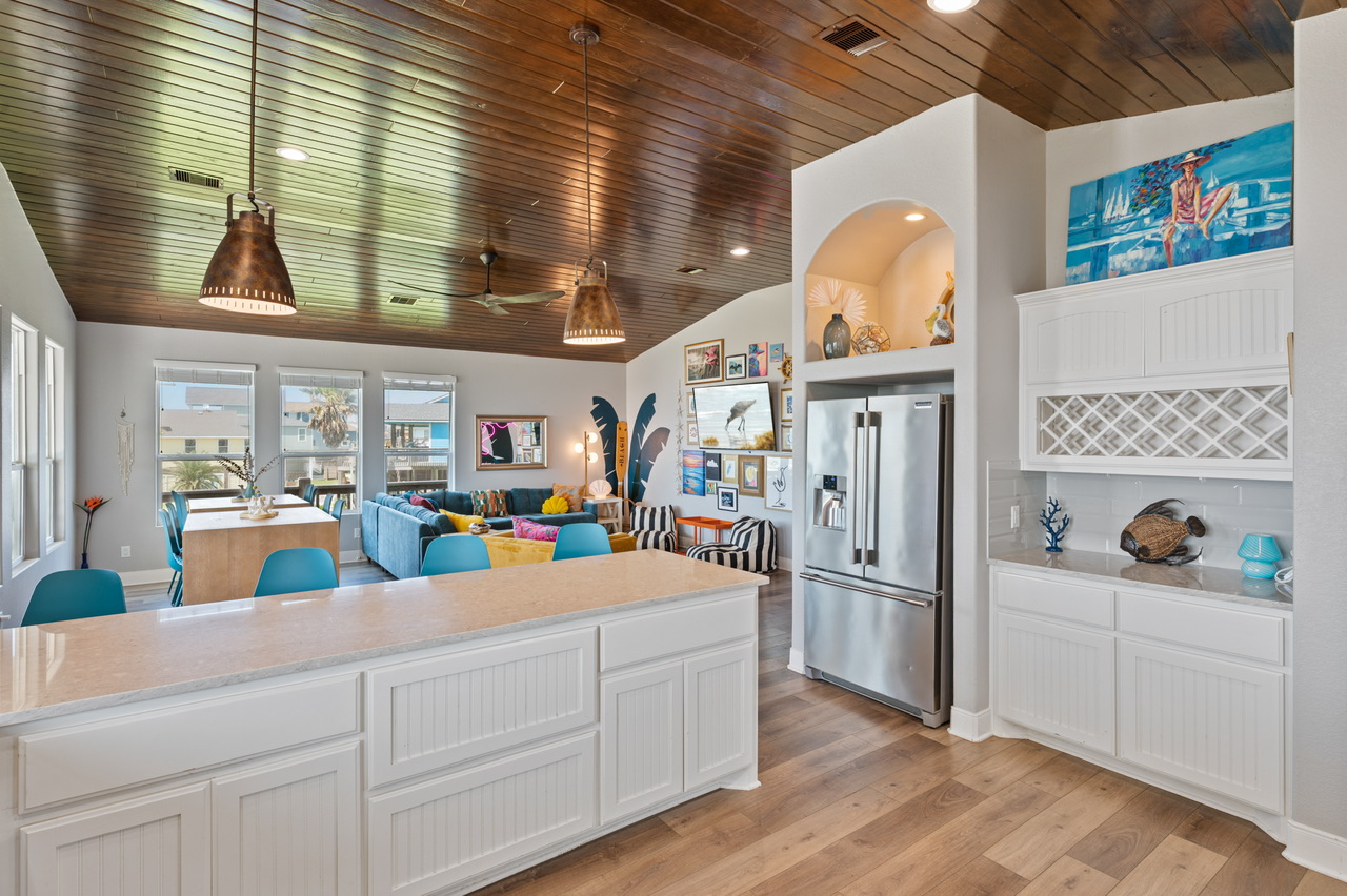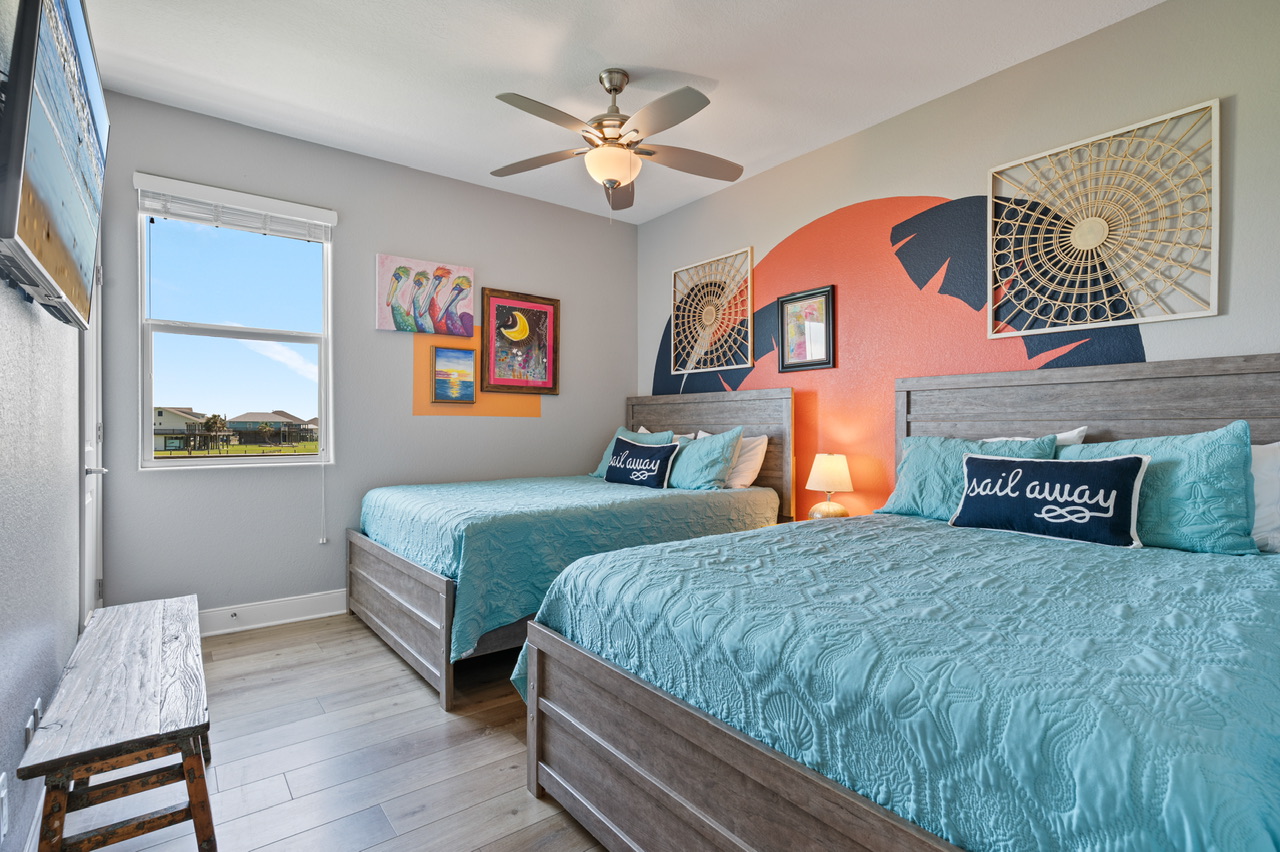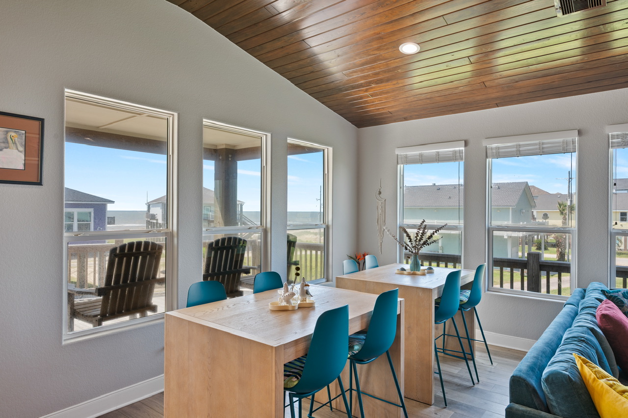 This was our first time visiting Crystal Beach and it is now our new favorite beach destination! Pretty beach, friendly people, and great atmosphere! It was a treat to have our morning coffee on the porch with such a beautiful view! This house is very kid friendly! We cooked most meals at the house which was made easy thanks to all the kitchen amenities. The Neon Moon is located on a short dead end street which was great so the kids could play in the yard without worrying about traffic. The house was clean and inviting and the artwork and environment inside is more fun than any rental I’ve ever stayed at! We will absolutely come back to continue our search for shark teeth and hermit crabs! We highly recommend the Neon Moon and can hardly wait to come back!- Anonymous U , Posted: 05/23/2022