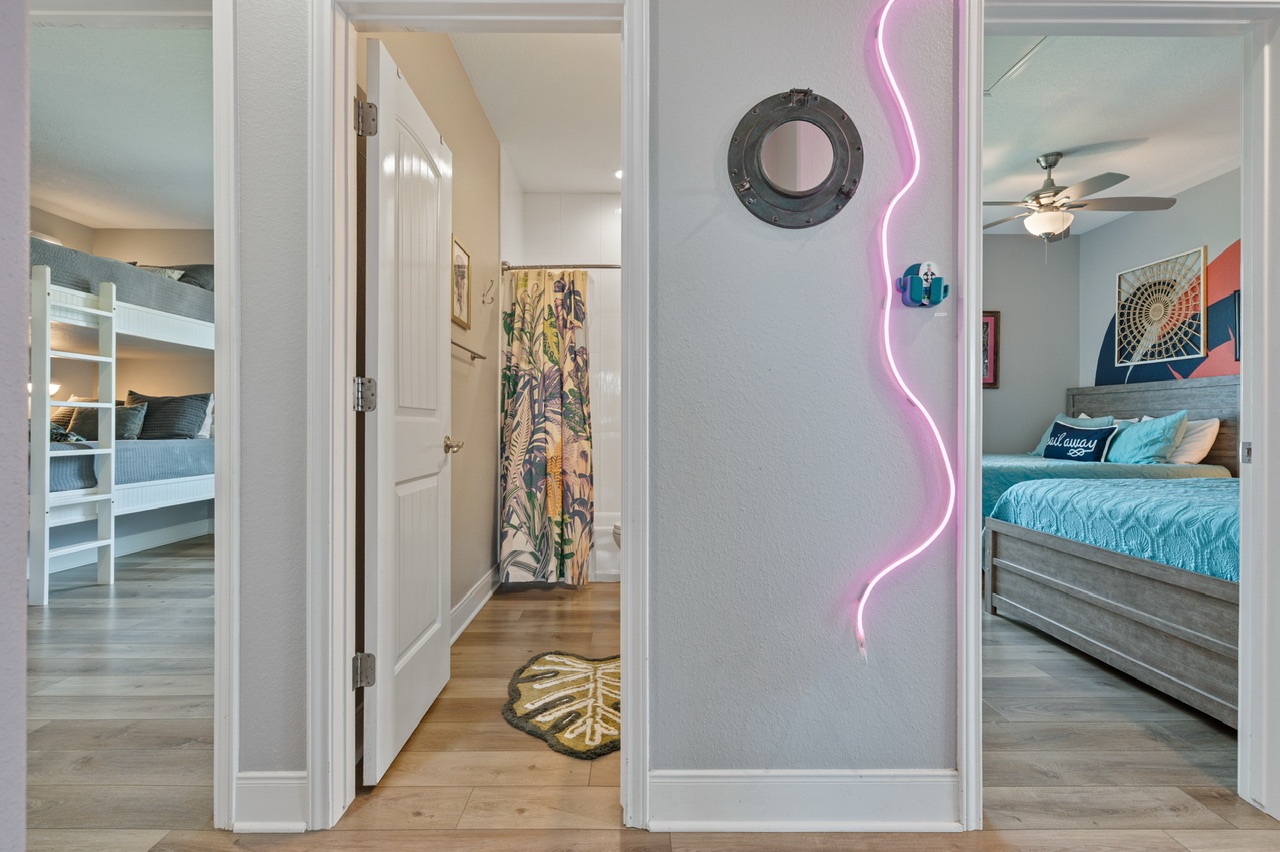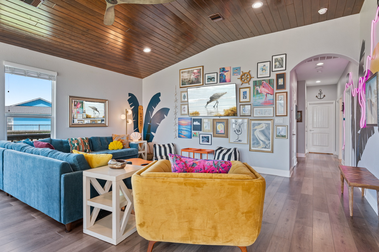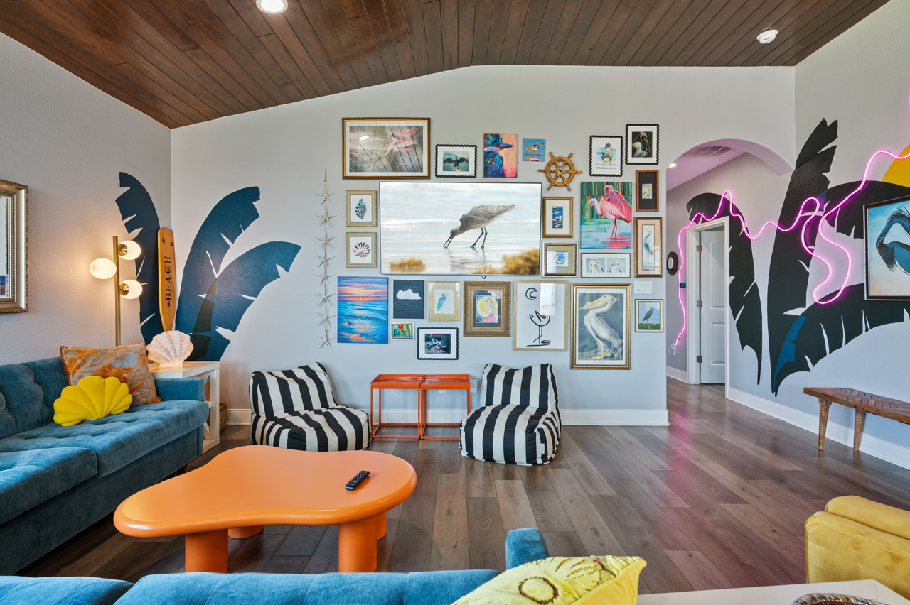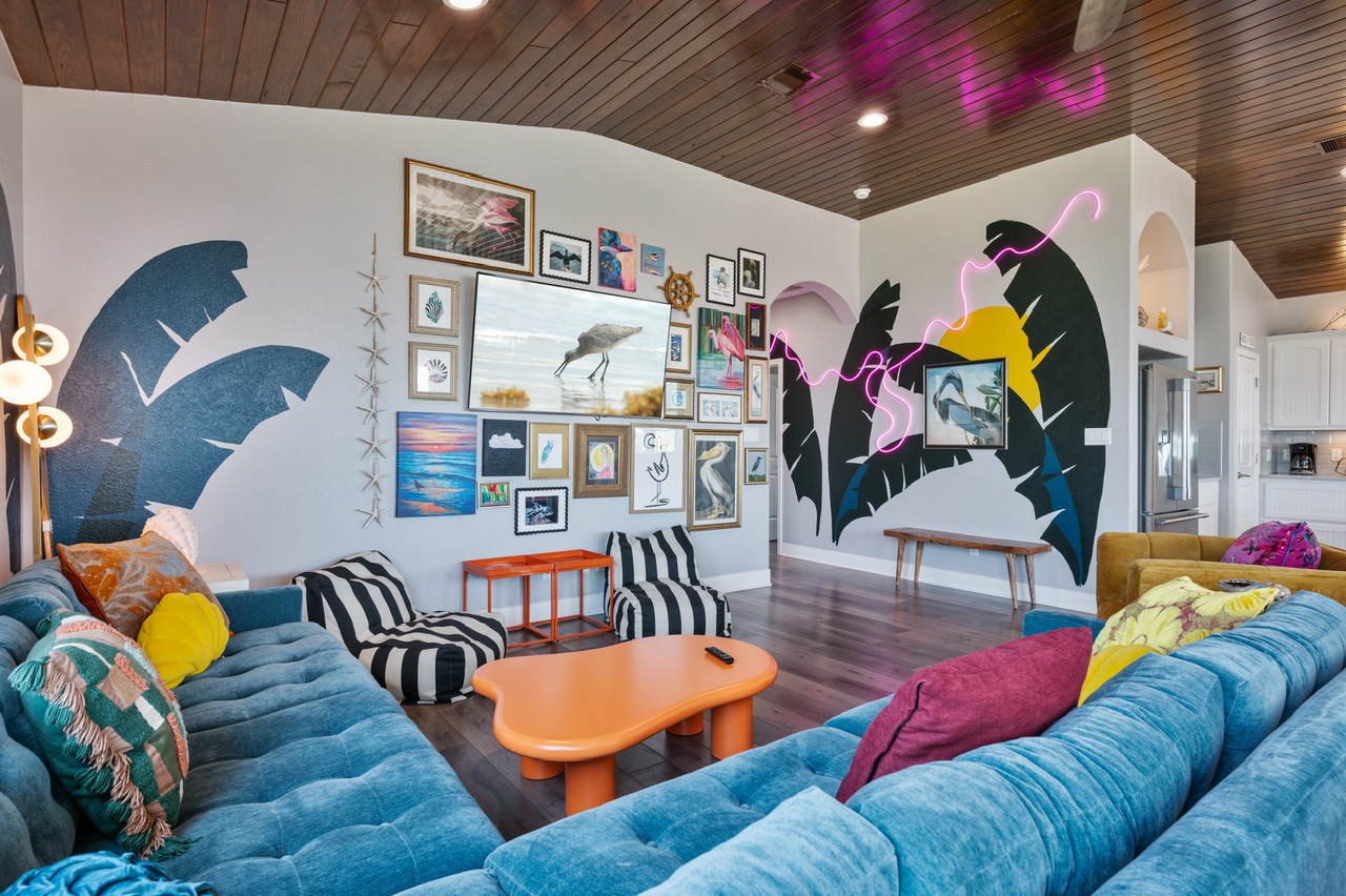 I’m obsessed with this place. I’ve been coming to the gulf coast my whole life but this was my first time in such a cool house. The walls had custom murals and neon lights, the art was fun, the upstairs deck was full of chairs with a direct view of the ocean. I could sit on the deck and watch the pelicans flying through the neighborhood and over the waves forever! We also found toys and games in the garage, showered in the outdoor shower, hung out down the street at Stingaree for bay view sunsets, I wish I never had to leave. We could tell the owners loved this place and wanted us to love it too! The little details were definitely considered from the extra pillows and throws to plenty of hooks in the bathroom. The non stop Instagramable background moments and ambience of the living room made for a fun tropical stay. Hoping to come back again because the house is just toooooooo cute to not!- Anonymous U , Posted: 06/09/2022