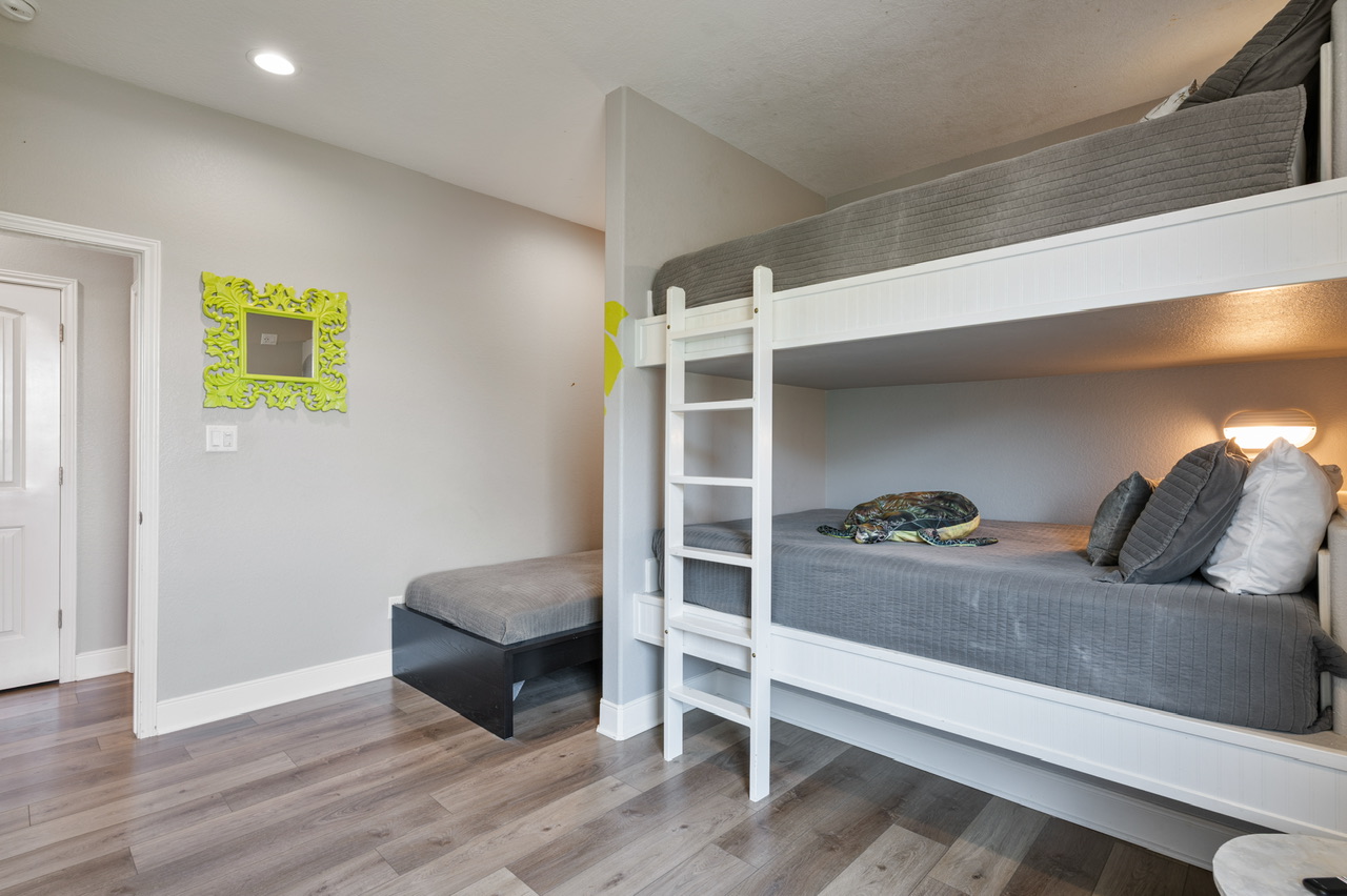 | Rooms | Primary Bedroom (King), Bedroom 2 (2 Queens), Bedroom 3 (Queen/Queen Bunk, 1 Twin), Extra Sleeping (Queen Sleeper Sofa). Primary Bath (Large Walk-in Shower), Guest Bath (Tub/ Shower Combo). |